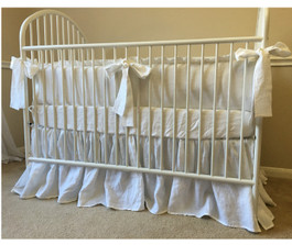 Quick view Compare Stone Grey Ticking Striped Bumper, Pink Sash Ties and Pink Skirt, Crib Bedding Set $377.00