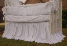 White Ruffled Bumper meets Gathered Skirt, White Crib Bedding Set