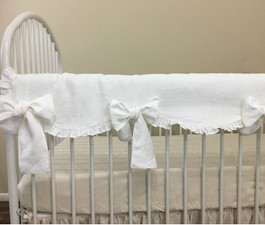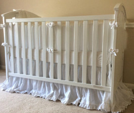 White Ruffled Bumper with Small Bow Ties, Gathered Crib Skirt