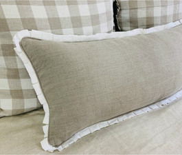 Quick view Compare 1 top sheet 110Wx110L in white linen with teal cording , 4 standard size shams in coin grey with teal cording $487.00