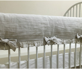 Crib Rail Guard is a must have for a bumperless crib bedding, it protect the baby and protect the crib while maintaining a stylish decor for your nursery. Scallped and straight square design with removable padding, easy tie solution, handmade with 100% linen.