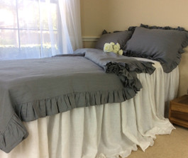 Quick view Compare Blue and White Linen Ticking Striped Duvet Cover with Mermaid Long Ruffles $339.00