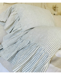 Weaved Classic Stripe in fresh green and white linen, this self-ruffled sham cover adds nice touch to your home décor. Paired with the ruffle duvet cover to complete the set. Available in all sizes or custom size. Conveniently machine washable.