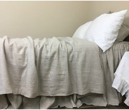 This textured bedspread in undyed natural linen will complement any bedroom decor. Medium weight linen, beautifully draped, effortlessly turn any bedroom into a remarkably romantic retreat with this rich yet light vintage style, recreated in smooth, richly textured linen for sumptuous home. The best part of this bed spread is its versatile use. You can use it for bedspread, coverlet, or as fitted sheet with ruffle falls. The ruffle falls can touch the ground which can be function as dust ruffle, or bed skirt. Shown in DARK LINEN, for other colors see our swatches.