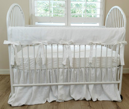 White medium weight linen, two 8"x20" drop piece with velcro to cover the side rails. Two 6"x20" fabric, finished hem.
